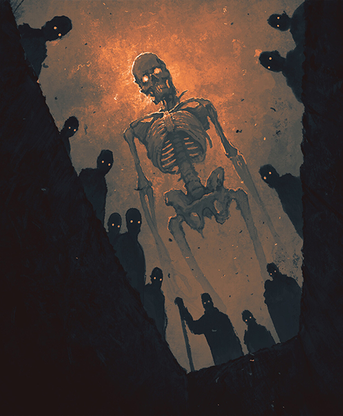 ”The deadfall from which Jud Crandall had called Ellie in alarm had become a heap of bones. The bones were moving. They writhed and clicked together, mandibles and femurs and ulnas and molars and incisors; he saw the grinning skulls of humans and animals. Fingerbones clittered. Here the remains of a foot flexed its pallid joints.