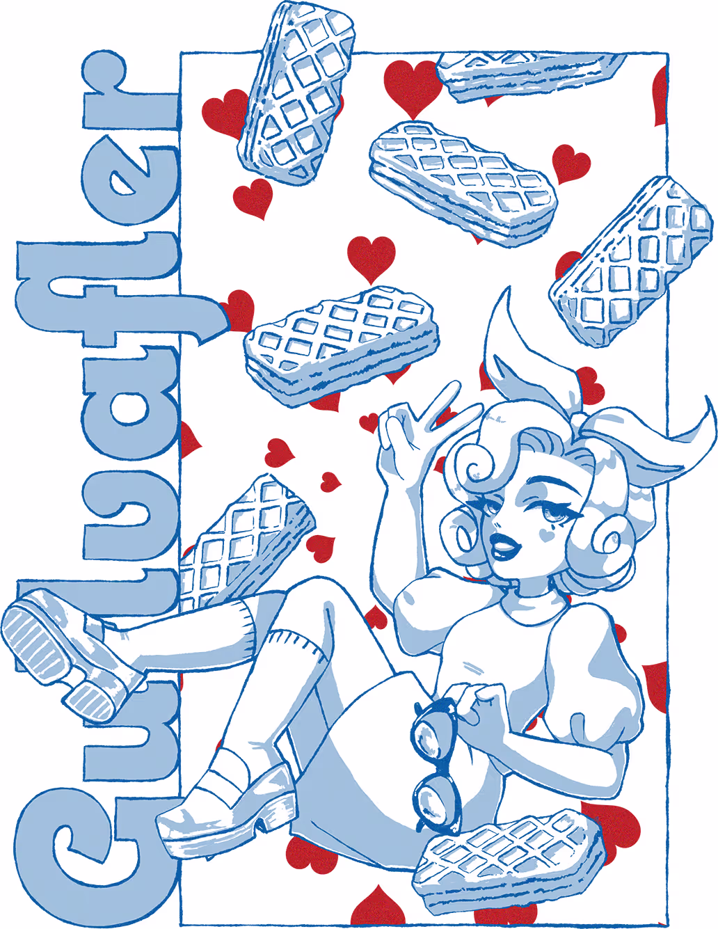 Siden Gullvafler emballasjen og kampanjenettsiden er inspirert av vintage reklame, valgte jeg å designe en eksklusiv illustrasjon til kampanjen. Jeg designet en ”maskot”-karakter inspirert av damene som ofte preger de gamle reklamene.